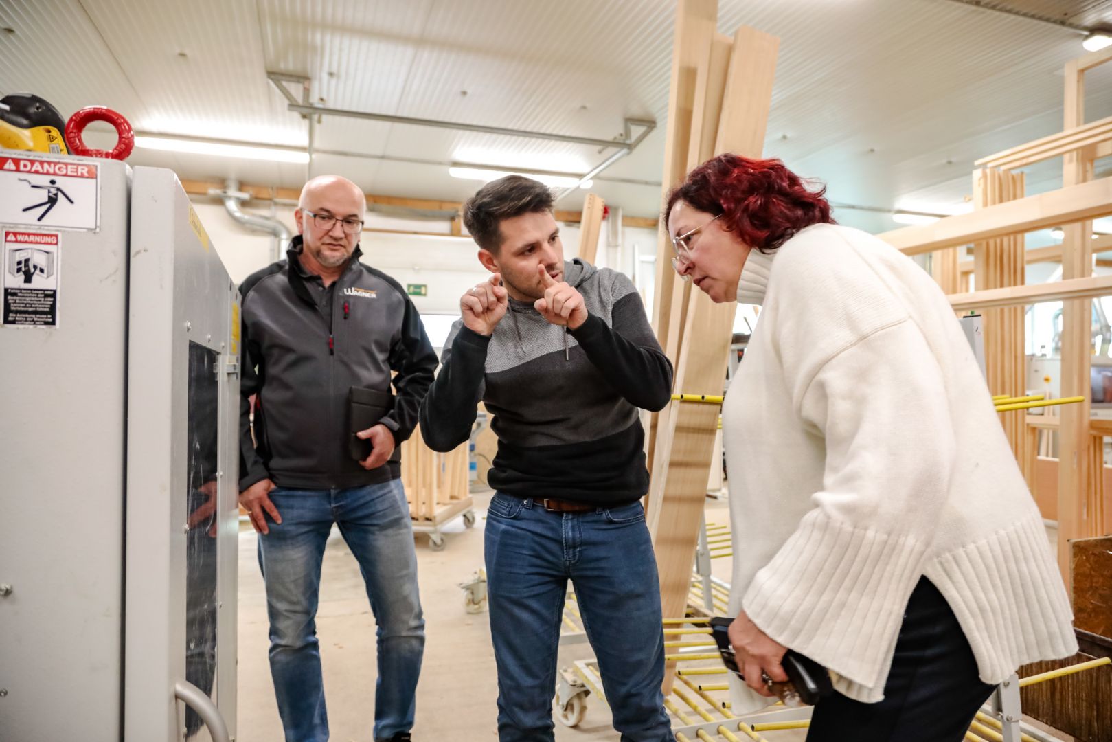 Natürlich wurde auch ein ausführlicher Rundgang durch unsere Holz- und Aluminiumproduktion gemacht, bei dem sie einen Einblick in unser zukunftsorientiertes Handwerk bekommen konnte.